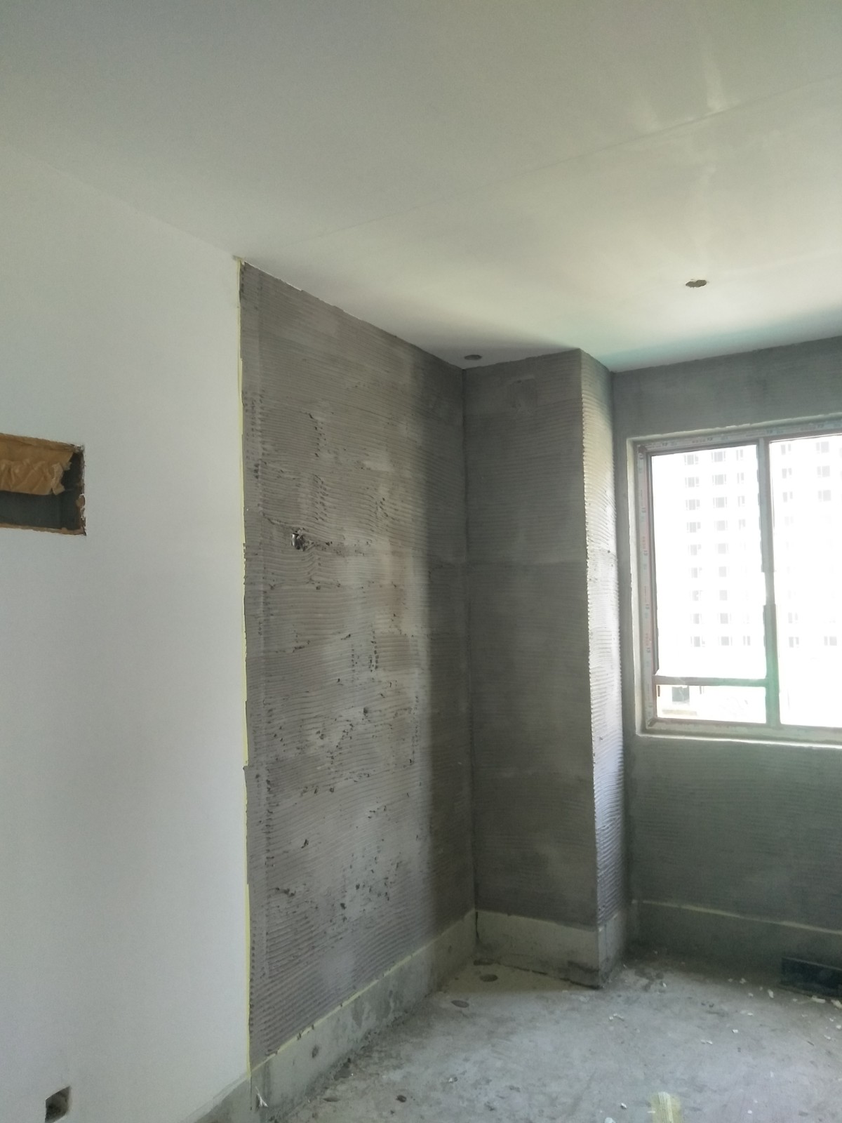 室內(nèi)房間:墻面用抗裂砂漿找平垂直,陰陽(yáng)下角線,用821膩?zhàn)优椤?/span>